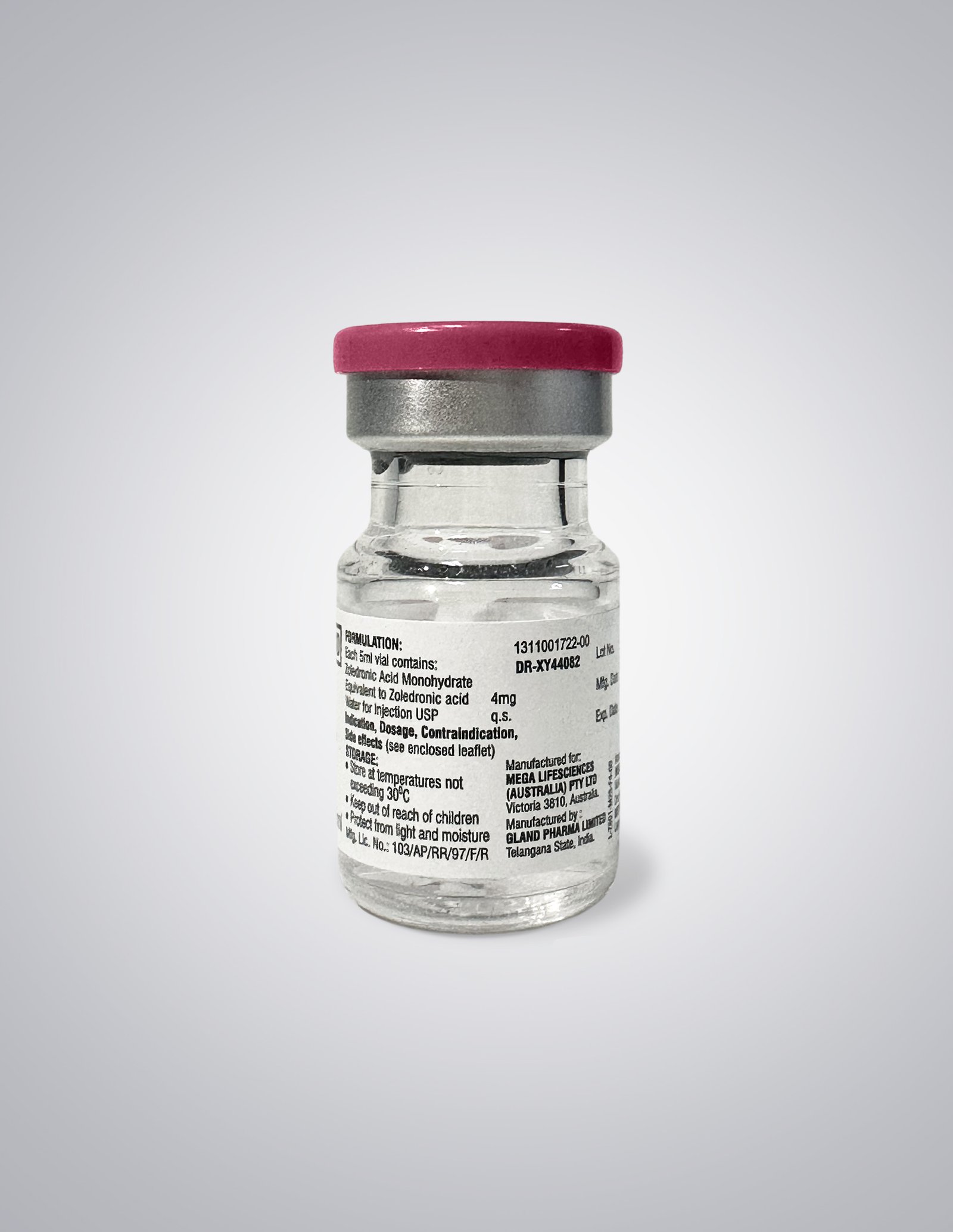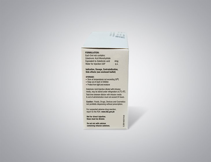 Each 5ml vial contains Zoledronic acid Monohydrate Equivalent to Zoledronic acid 4 mg water for injection USP q.s